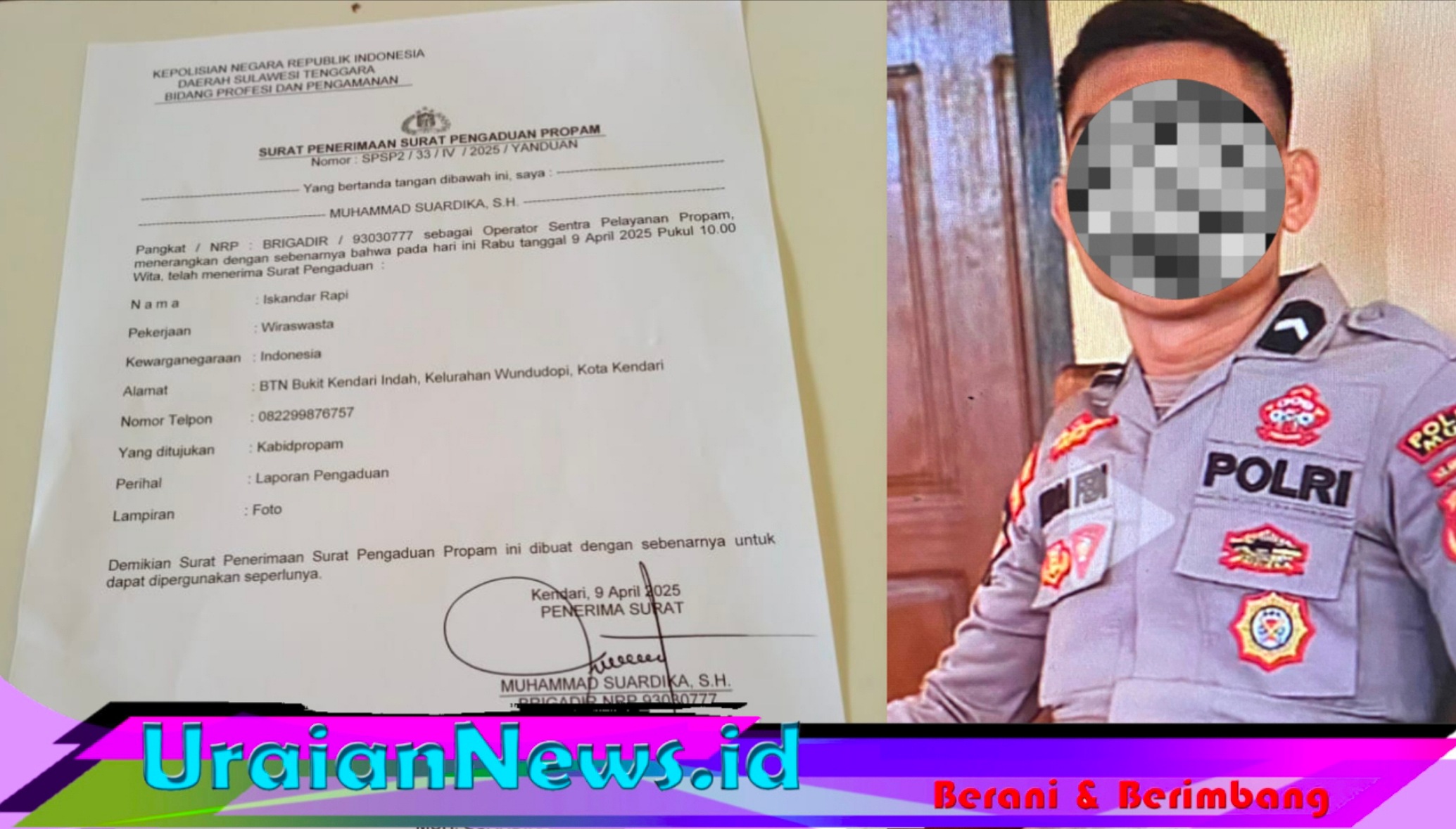 Menurut kuasa hukum keluarga RZ, pihaknya telah mengadukan Bripda IF, di Propam Polda Sultra, pada Kamis, 9 April 2025. Pengaduan itu tertuang dalam Nomor: SPSP2/33/IV/2025/YANDUAN.