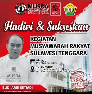 Hal itu dikatakan langsung oleh Koordinator Panitia Daerah, Irvan Umar Tjong. Pada kesempatan itu, Irvan nama sapaan akrabnya, mengatakan bahwa Wakil Menteri Desa, PDTT, Budi Arie Setiadi, telah terkonfirmasi akan menghadiri Musra ke-19 PROJO di Kota Kendari.