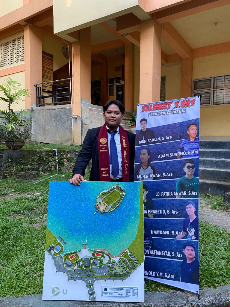 Tato berkeinginan melihat daerahnya maju dan berkembang, terutama dalam sektor pariwisata. Itu sebabnya ia mendisain sebuah maket yang ia harapkan dapat terealisasi. Tato seoarang mahasiswa Program Study Arsitektur, Fakultas Teknik, Universitas Muhammadiyah Kendari. Dalam waktu dekat, Arnold YM bersama 17 orang lainnya akan mengikuti wisuda sarjana yang rencananya akan digelar pada November mendatang.